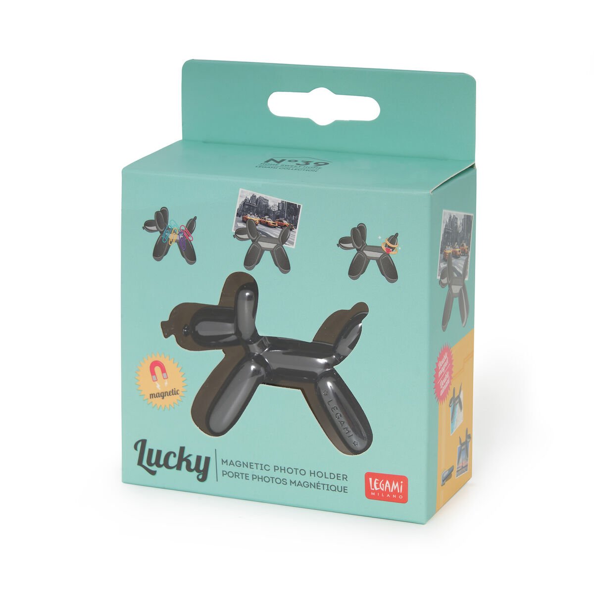 Fai amicizia con Lucky, il cane palloncino di Legami addestrato per essere un portafoto magnetico. Ma non solo: Lucky porta anche graffette, anelli e biglietti da visita. Quando poi lo vuoi in bella mostra sulla porta del frigo, si sdoppia e si attacca in un attimo. Non è il migliore amico dell'uomo (e delle sue foto)?